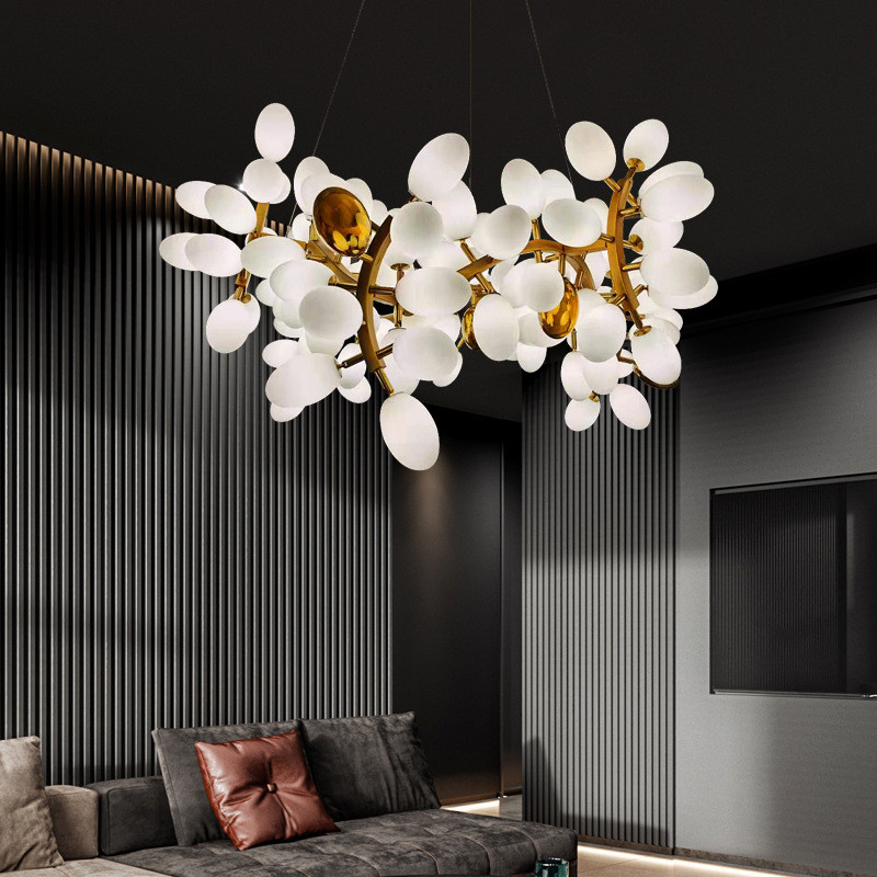 De glazen druivenlampenkap is gemaakt van hoogwaardig glas, met heldere glans, uniforme lichttransmissie, veiligheid en explosiebestendigheid, bestand tegen hoge temperaturen, bionische druivenkunst, mal maken met heldere textuur en levensecht;