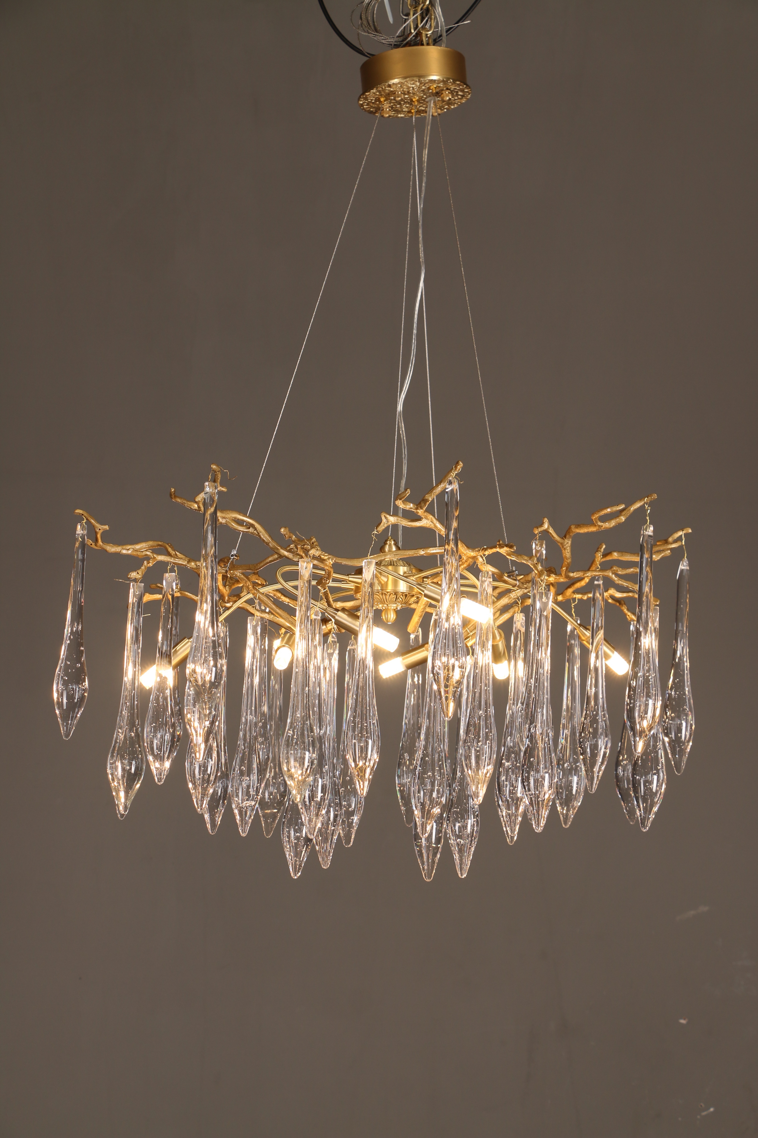 The water drop shape glass rod has exquisite craftsmanship and transmits light evenly, softly and without glare.