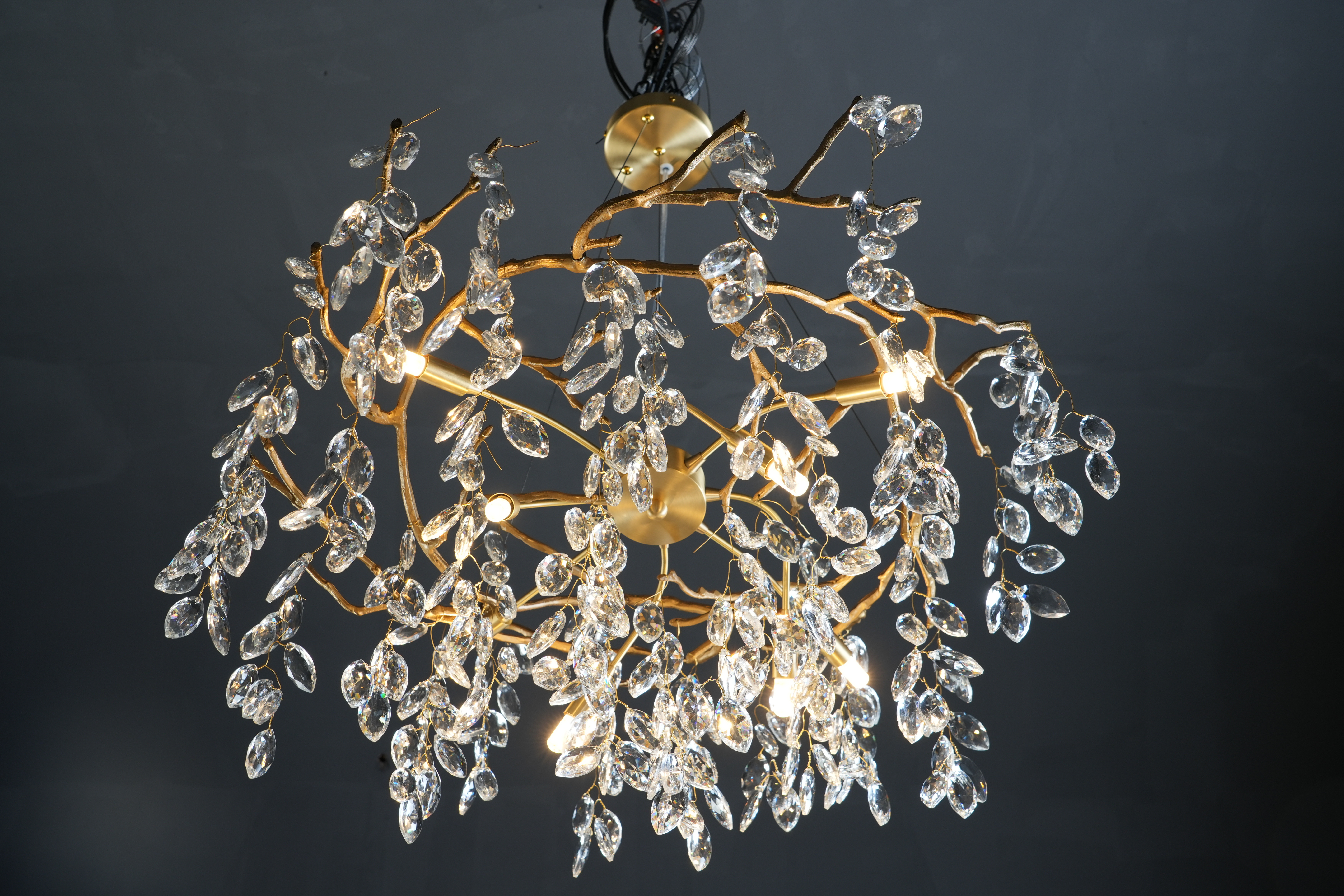 Decoration Chandelier Duplex Living Room Leaf Branch Crystal Chandelier Round Villa Hotel Simple Atmosphere French Custom Luxury 3