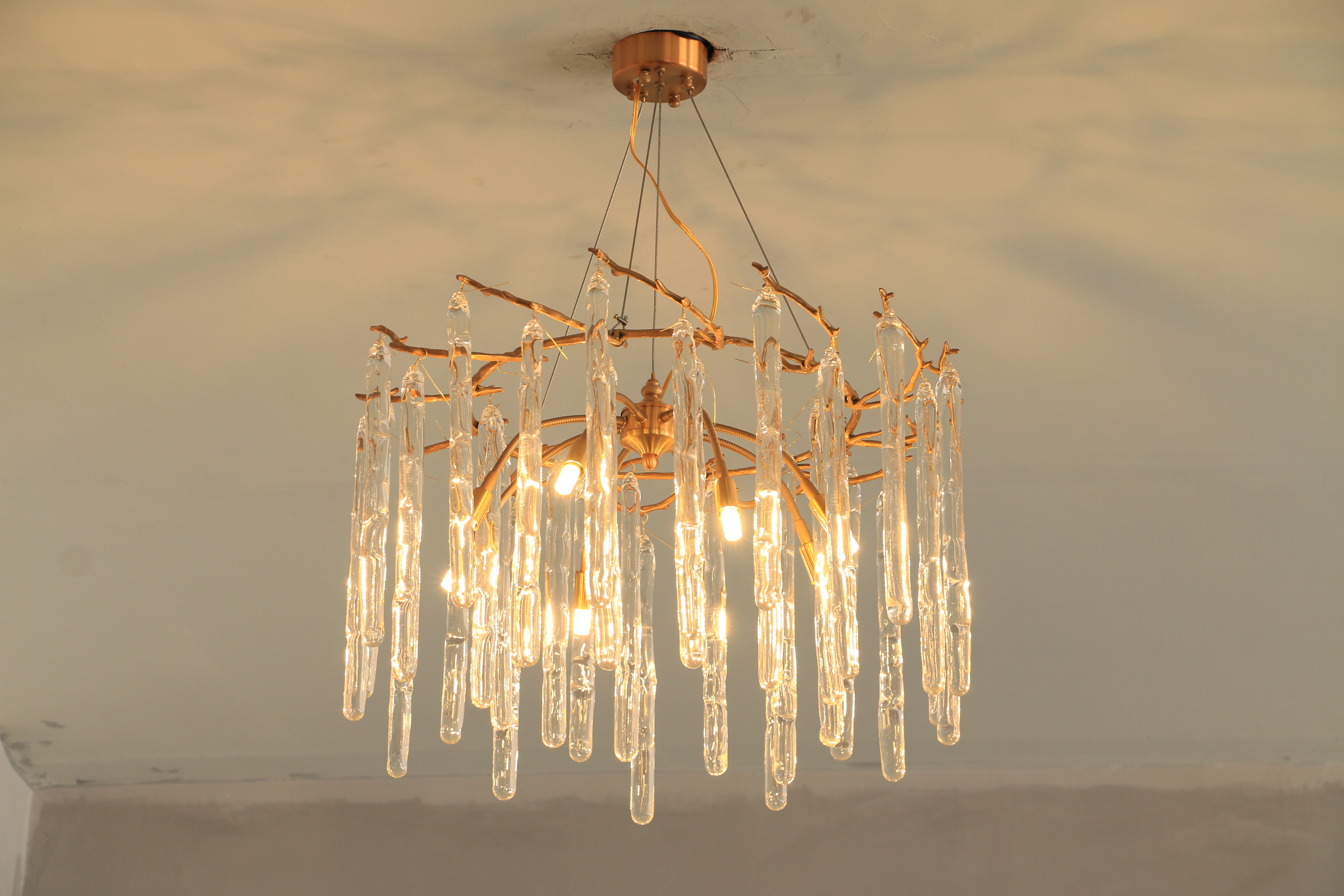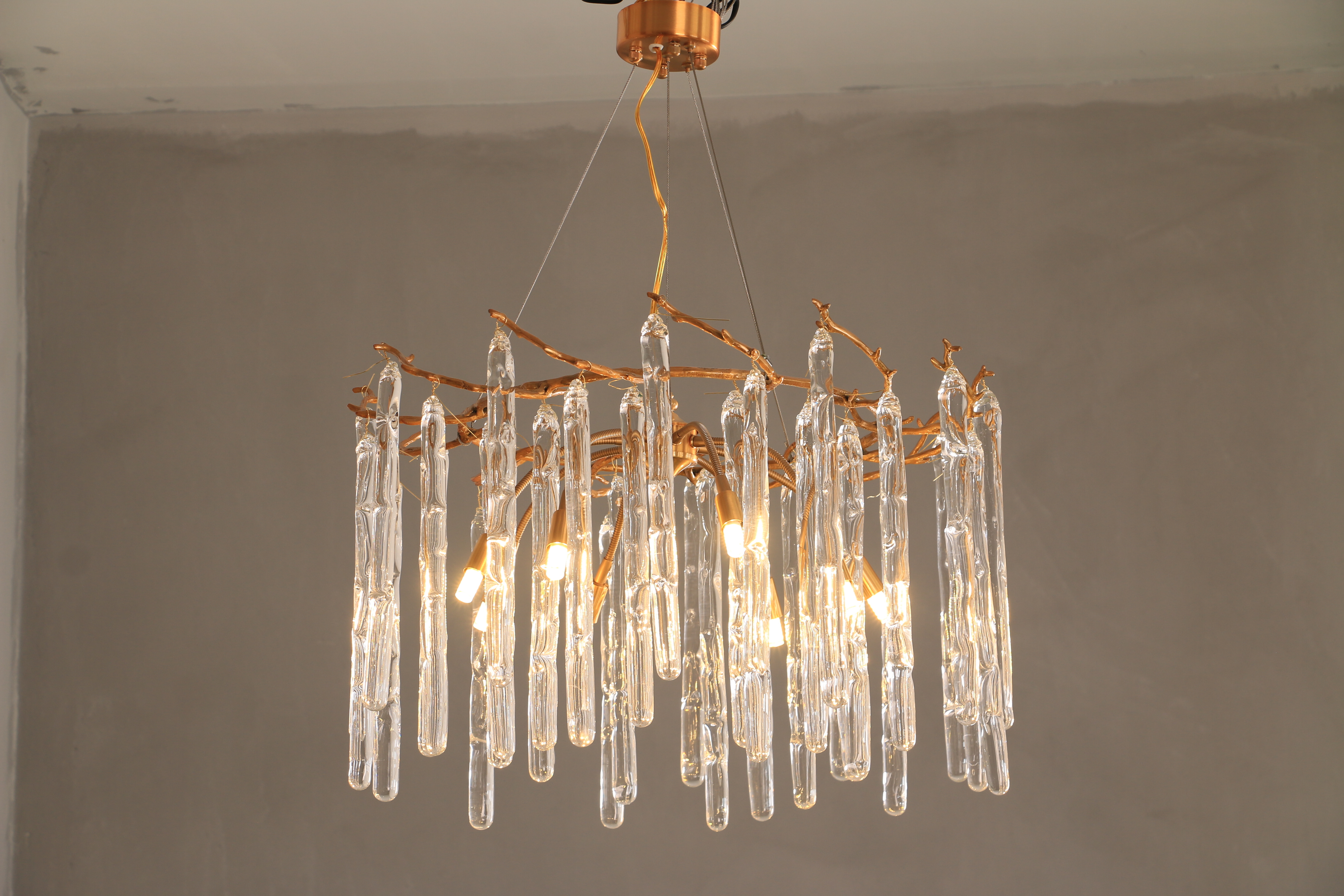 De druppelvormige glazen staaf heeft een voortreffelijk vakmanschap en zendt licht gelijkmatig, zacht en zonder schittering uit.